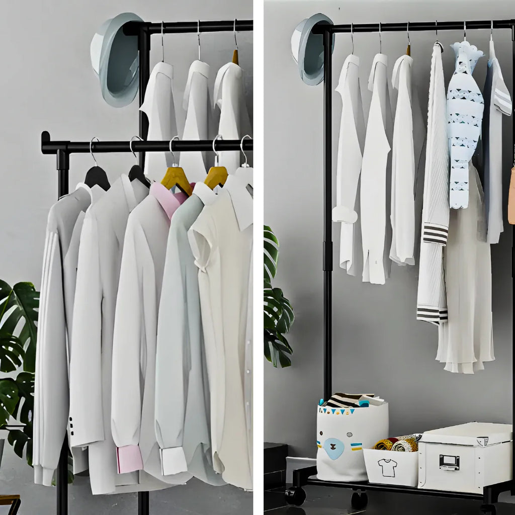• Durabilidade e Praticidade: Construída em aço inox de alta qualidade, nossa arara é robusta e confiável, garantindo segurança para suas roupas. Sua estrutura desmontável facilita a movimentação e o armazenamento quando necessário.