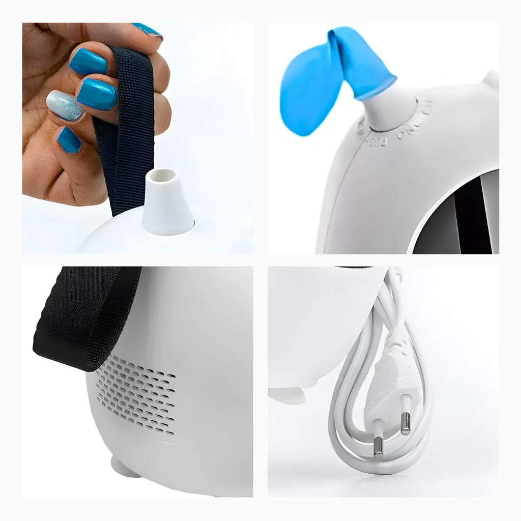 - Inflação rápida: Encha seus balões com mais agilidade, sem necessidade de esforço manual.