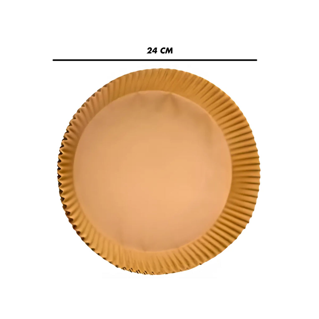 - Segurança e Praticidade no Uso: A forma não interfere na circulação de ar da fritadeira, permitindo uma cocção uniforme e eficaz. Os alimentos cozinham de maneira saudável, com menos gordura, já que o excesso de óleo é absorvido pela forma de papel.