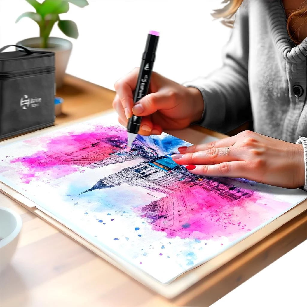 Pontas duplas em cada caneta: Uma ponta fina para traços precisos, contornos e escrita detalhada. Do outro lado, uma ponta pincel para preenchimento, sombreamento e traços mais largos. A combinação perfeita para explorar diferentes técnicas artísticas.