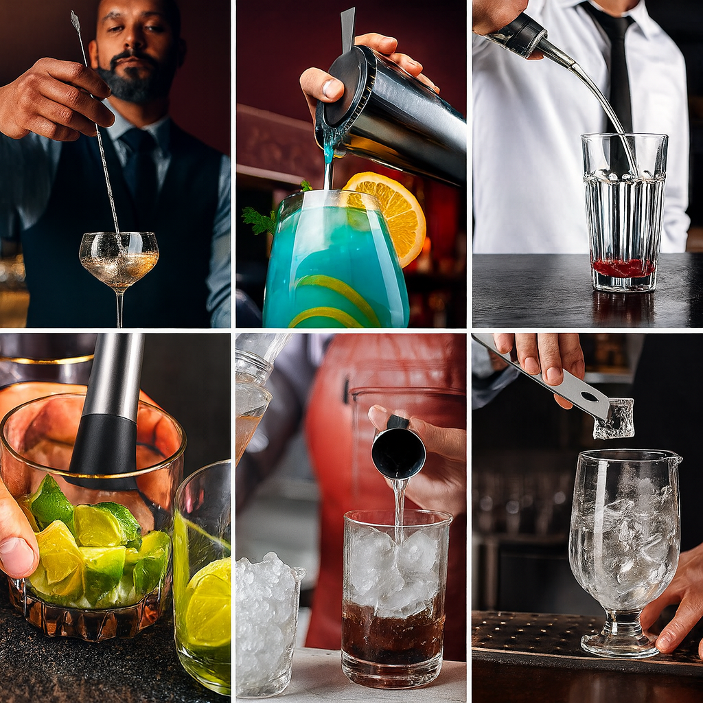 Além de funcional, acompanha um suporte em bambu que mantém todas as peças organizadas e ainda adiciona um toque sofisticado à decoração do ambiente. O kit é completo e oferece os principais acessórios utilizados por bartenders e apreciadores de coquetéis, sendo perfeito tanto para uso doméstico quanto profissional.