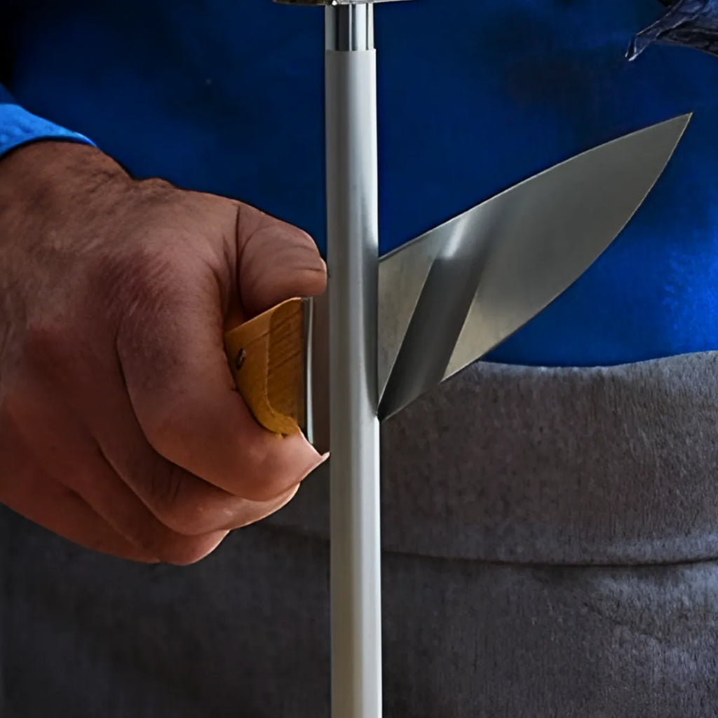 - Importância da Chaira: Para manter o fio da faca sempre alinhado e afiado, o uso da chaira é essencial. Uma chaira estriada ou lisa não só prolonga o poder de corte, mas também ajuda a manter a lâmina em ótimo estado, sem desgaste excessivo.