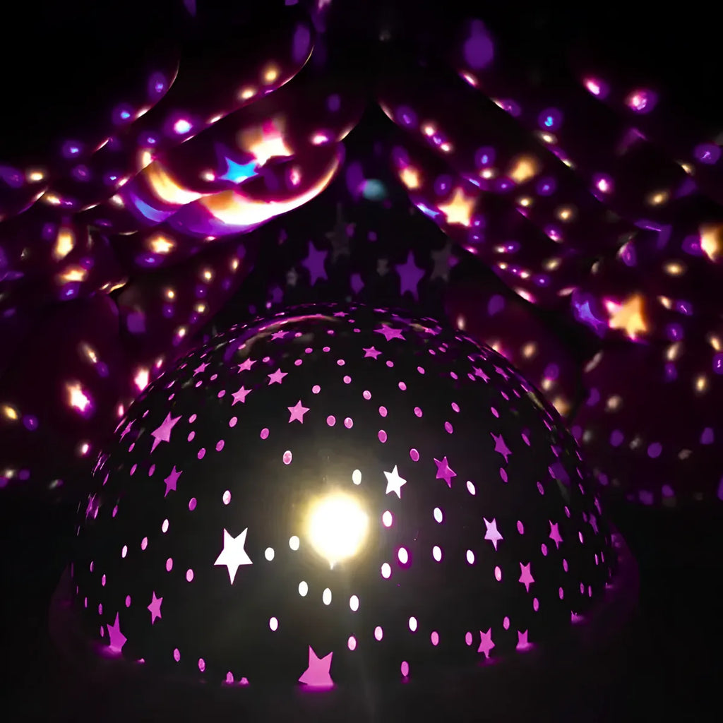 • Projeção 360º: A Luminária oferece uma projeção celestial que cobre todas as direções, enchendo o ambiente com um céu estrelado fascinante. As estrelas se movem suavemente, criando uma sensação de tranquilidade e encantamento que torna as noites mais relaxantes.