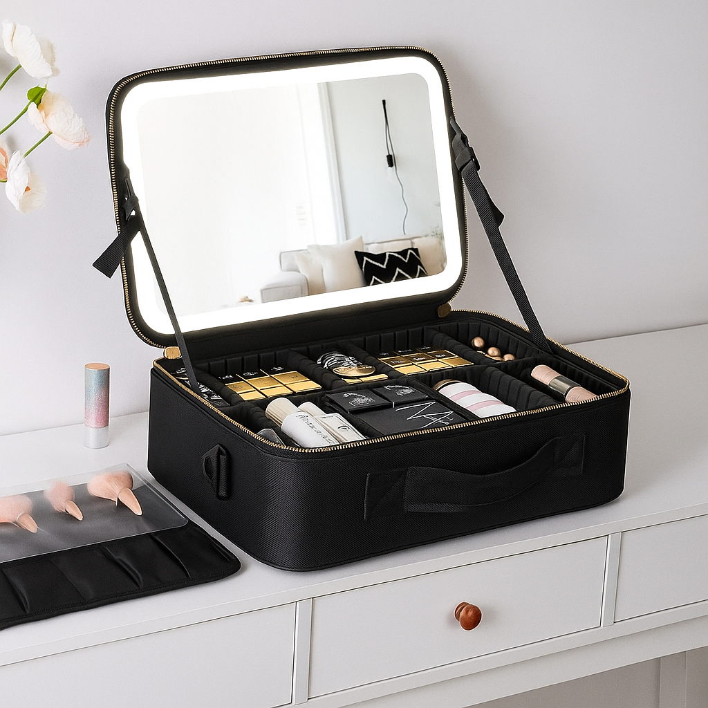 Maleta de Maquiagem com Espelho LED – Beleza, Organização e Praticidade em Um Só Lugar