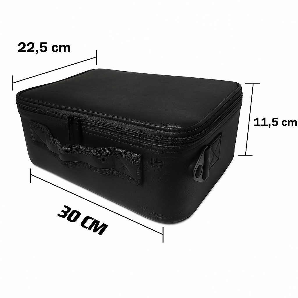 Divisórias internas ajustáveis: acomode maquiagens, pincéis, cremes e acessórios com total praticidade