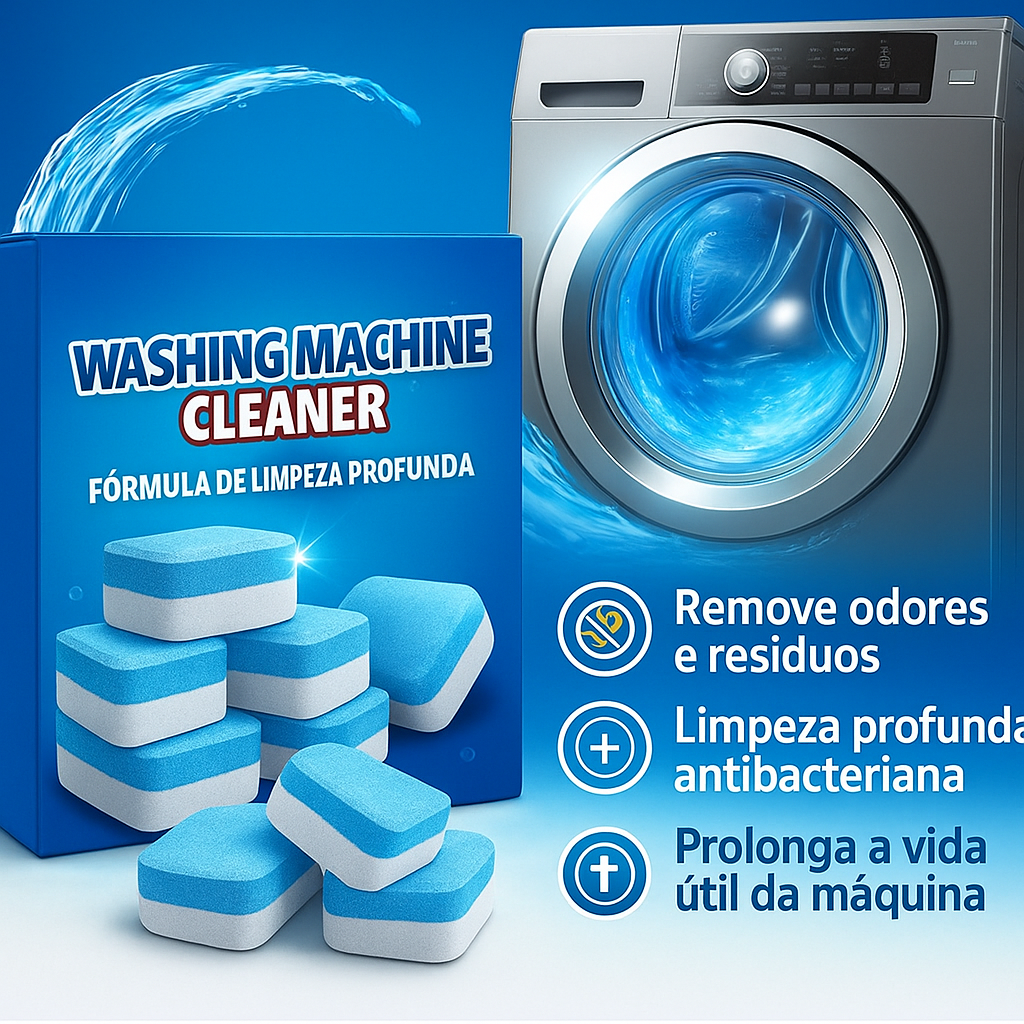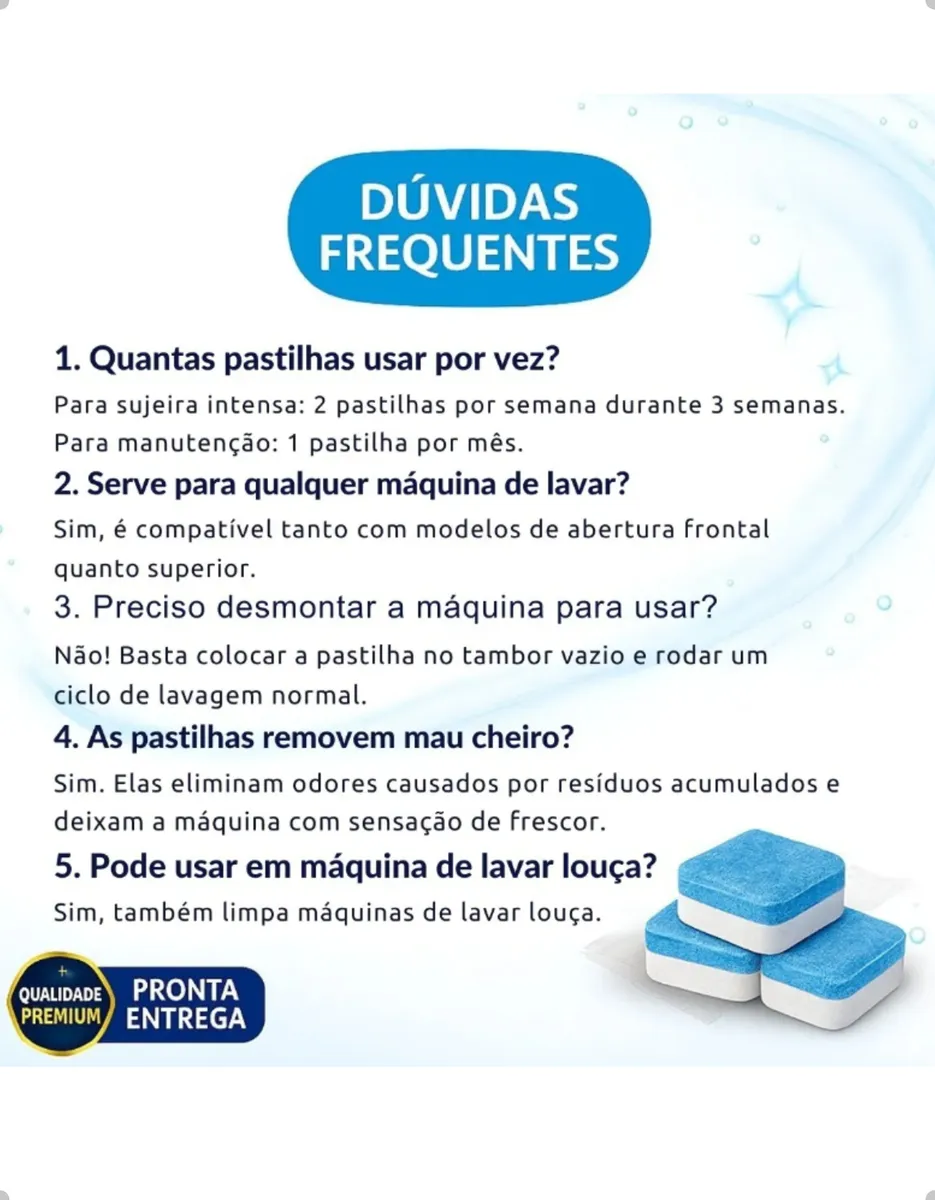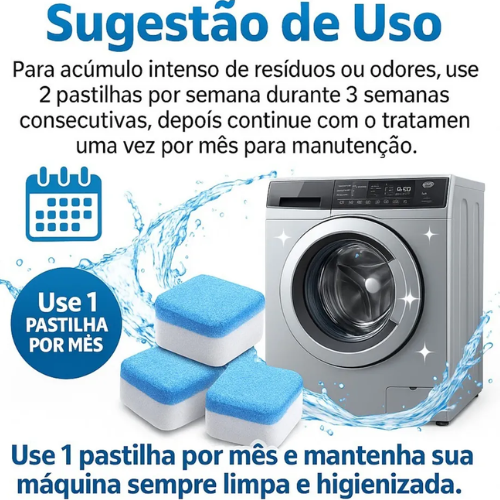Mantenha sua máquina de lavar livre de odores, resíduos e bactérias com as Pastilhas de Limpeza Profunda!