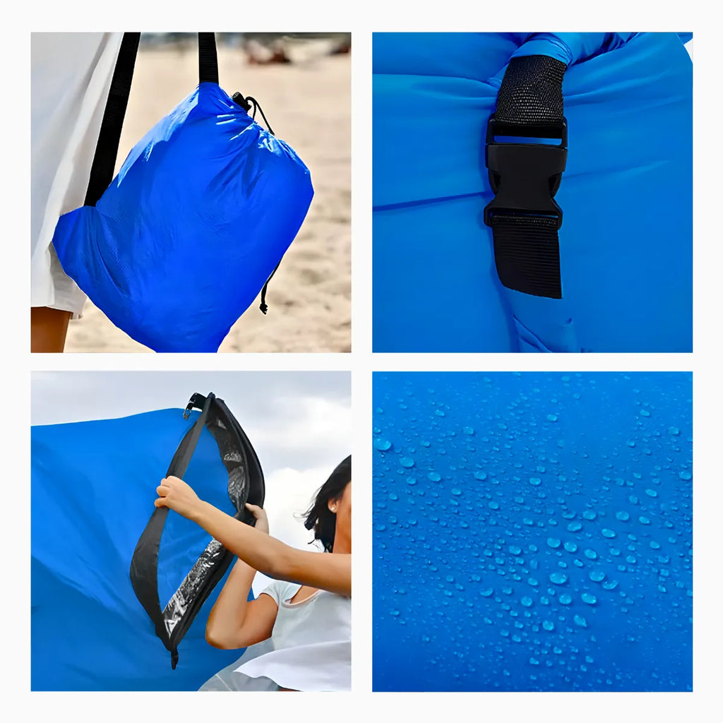 - Fácil de Inflar: Não é necessário bomba. Basta abrir a boca do sofá para que o vento o infle automaticamente, ou siga um simples processo para inflá-lo sem vento.