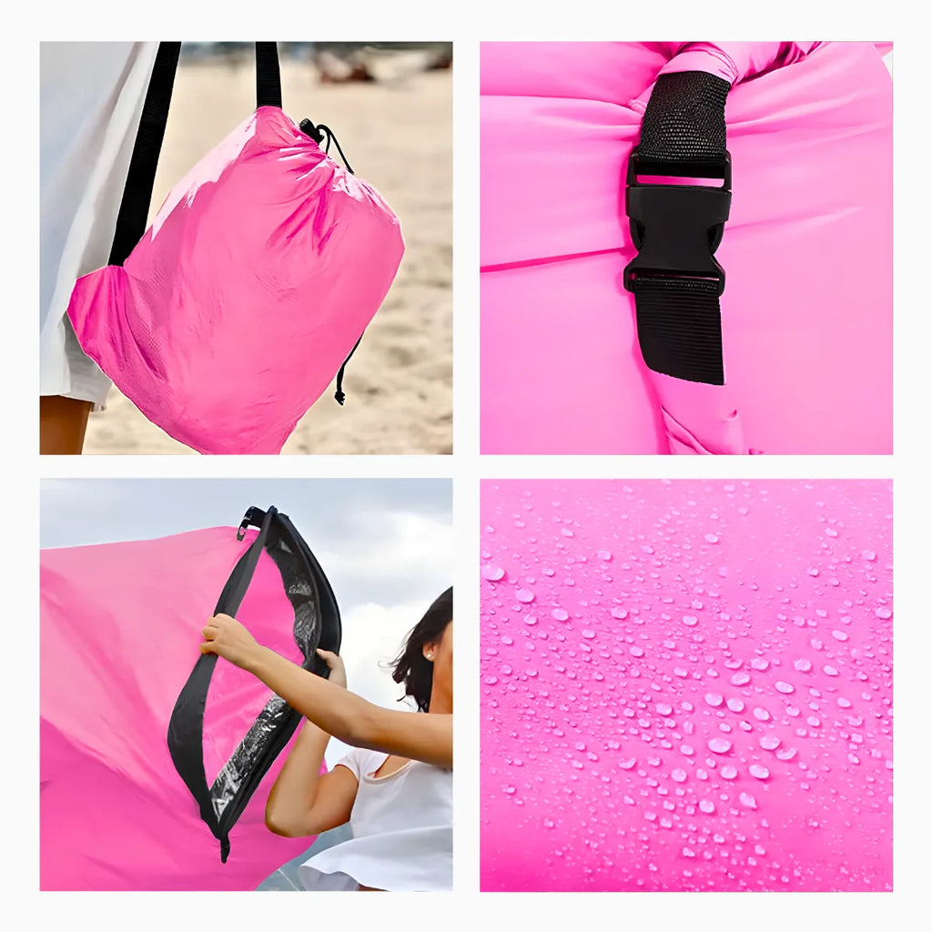 - Fácil de Inflar: Não é necessário bomba. Basta abrir a boca do sofá para que o vento o infle automaticamente, ou siga um simples processo para inflá-lo sem vento.
