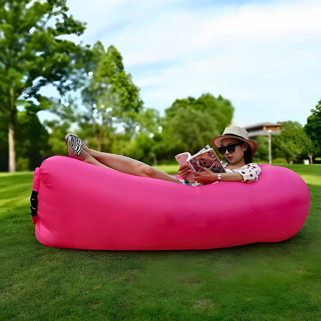 Com este sofá inflável, relaxar em qualquer lugar nunca foi tão fácil e confortável. Ideal para quem procura praticidade e descanso em qualquer ocasião.